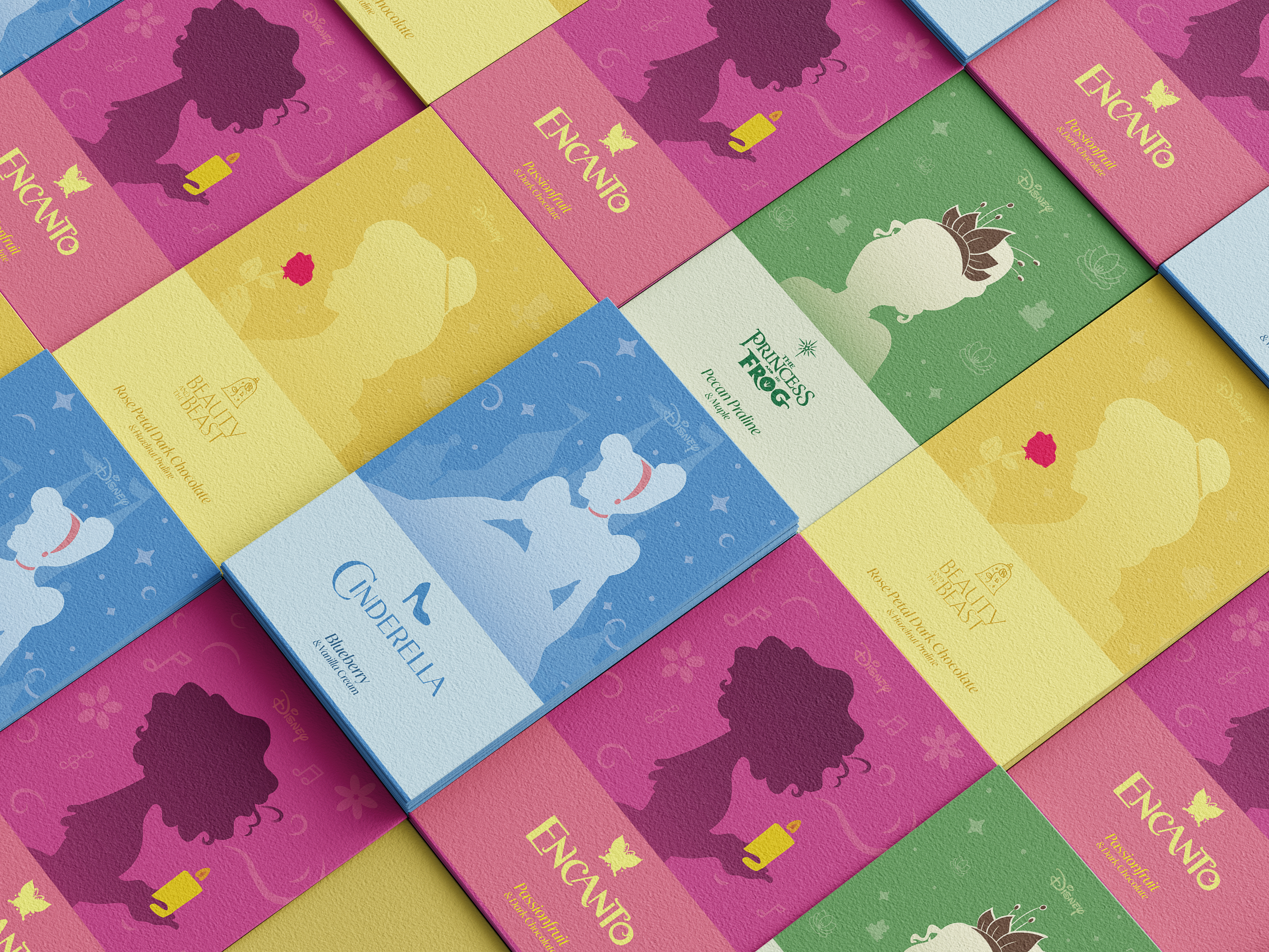 Packaging and product concept design — visual identity and box design for a Disney-inspired chocolate collection.